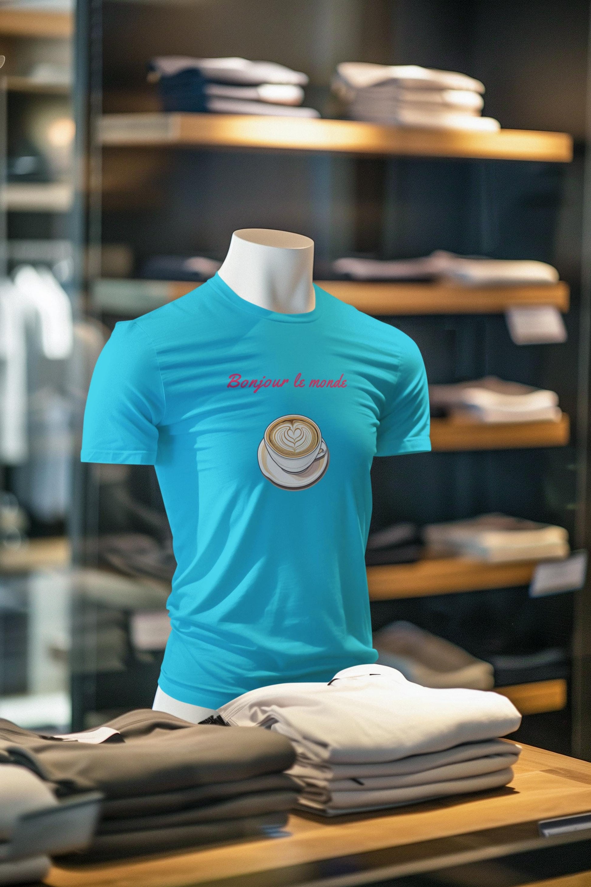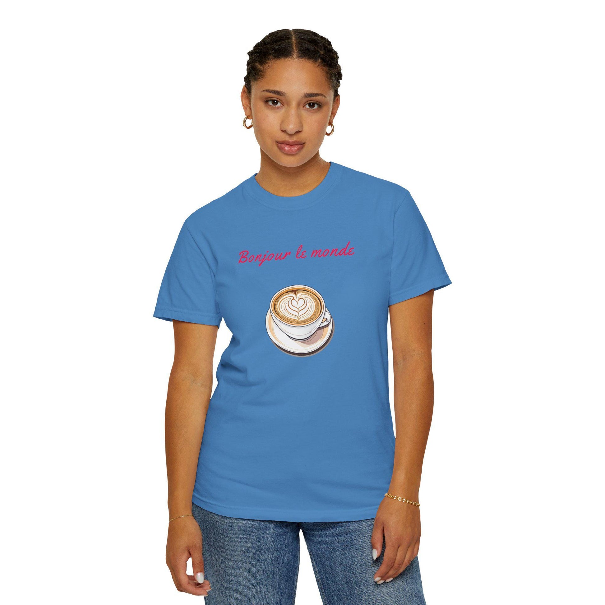 Bonjour le Monde Weekend Coffee T-Shirt, Unisex Tee, Vintage Aesthetic, Women Casual Wear, Gift for Coffee Lovers, Travel and Café Culture