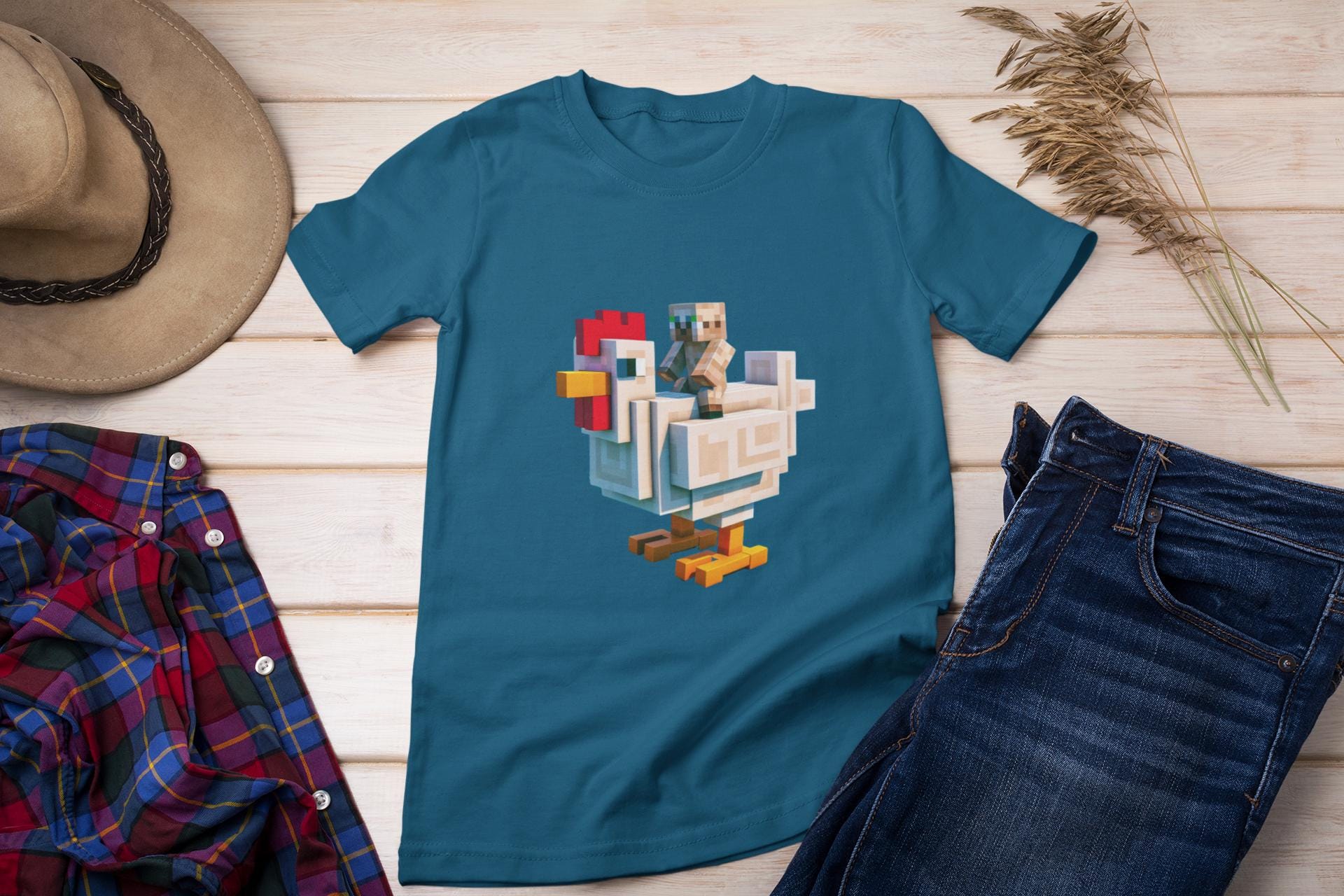Minecraft Movie Chicken Jockey Kids T-Shirt, Fun Graphic Tee for Playtime, Cool Gift for Birthdays, School Days, Casual Back to School Wear